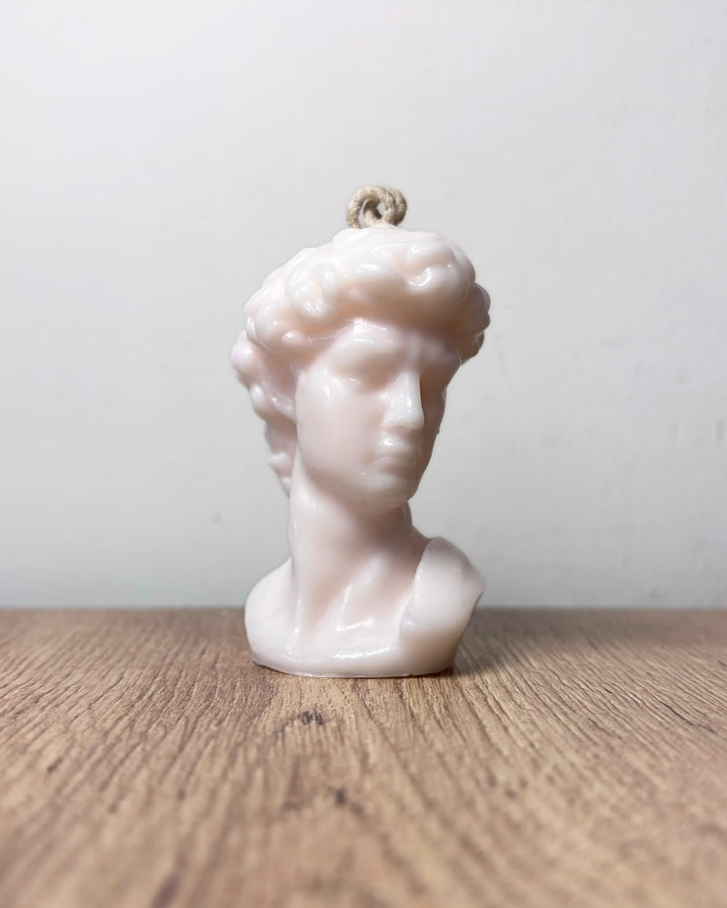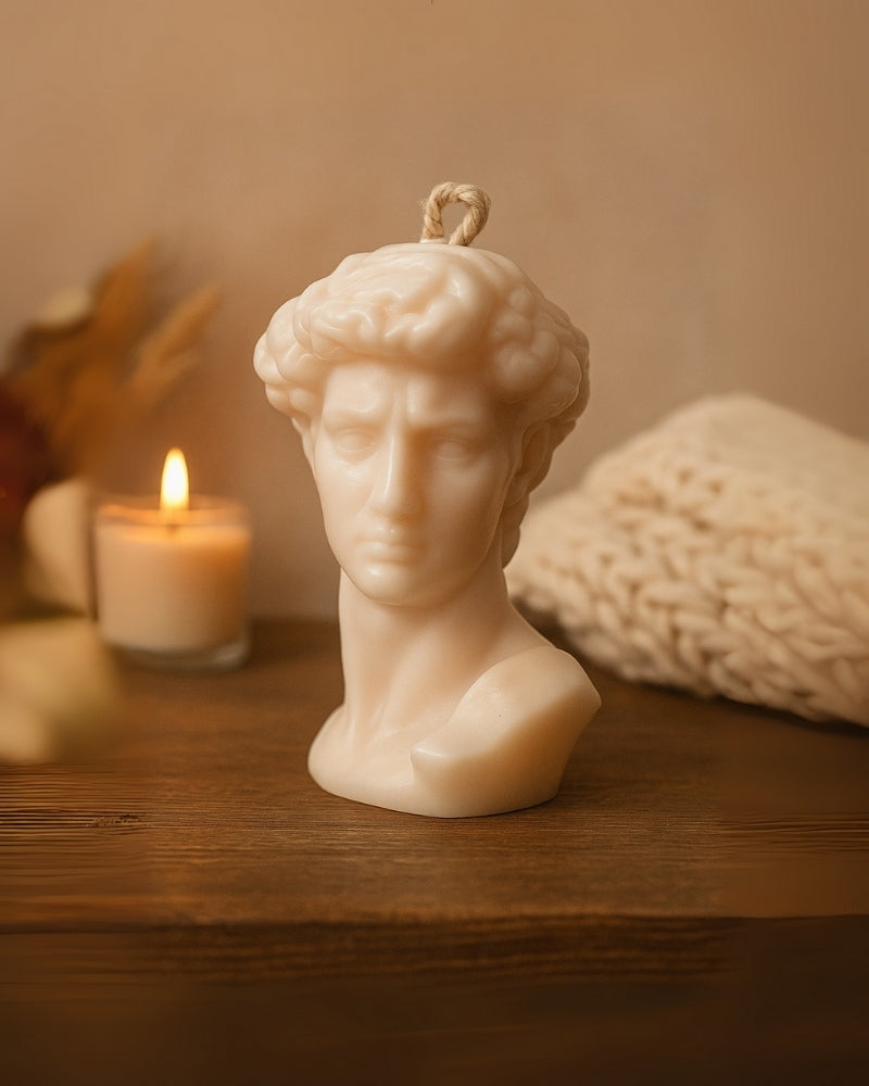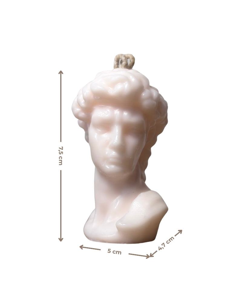 Inspirada en la icónica escultura de Miguel Ángel, esta vela artesanal representa la figura de El David en todo su esplendor.