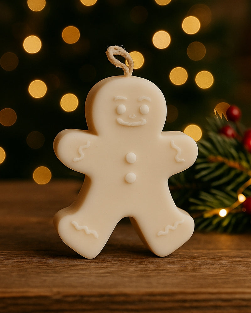 Un clásico navideño transformado en arte. Esta vela artesanal en forma de muñeco de jengibre está elaborada con cera de soya natural. Perfecta para decorar, regalar y llenar tus celebraciones de ternura, tradición y un brillo acogedor.